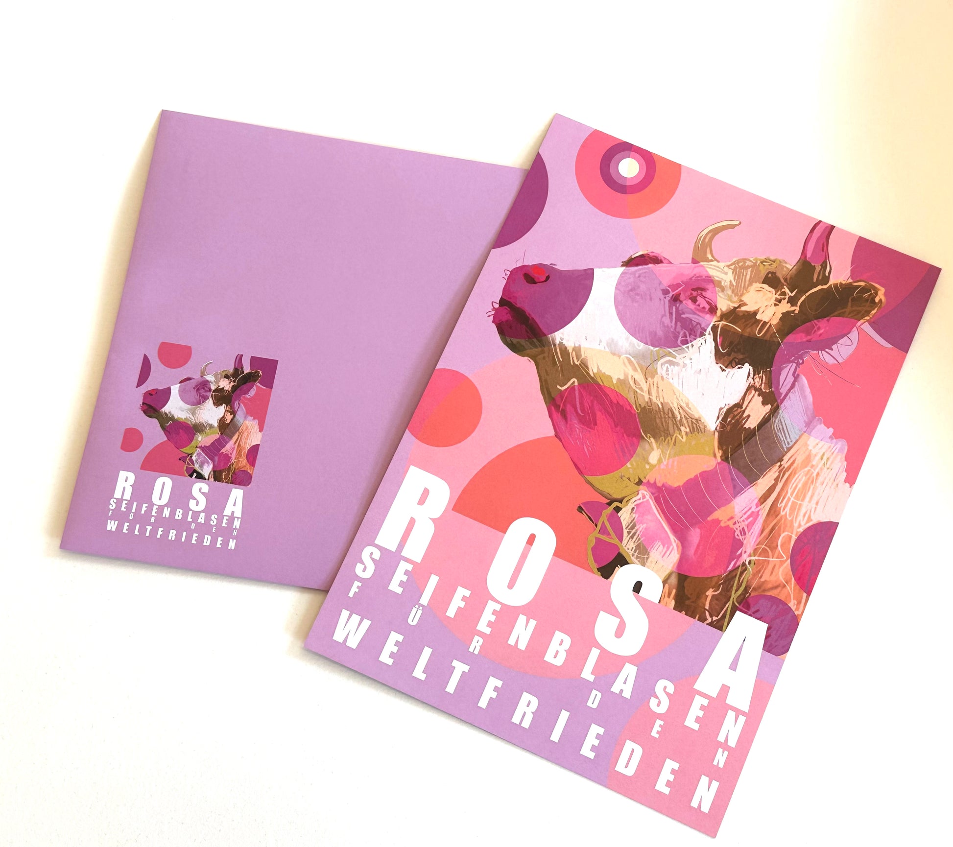 ROSA SEIFENBLASEN - Kuhpostkarte - 15x21 cm - mit Umschlag